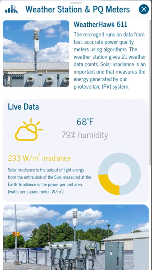 On-site functionality allows the Mount Holly visitor to explore the microgrid equipment with the following features/content: