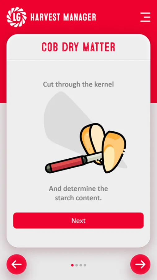 This tool assesses the condition of the crop and advises on target harvest date to ensure the crop is cut at the optimum dry matter to maximise feed values and fermentation quality. A separate assessment is made of the dry matter of the cob and of the stem, the app will then determine if the crop is ready for harvest and recommend a cutting date. If harvest is not imminent, the app uses postcode related weather data to predict when the crop will be suitable for harvest.