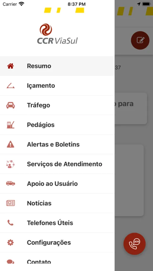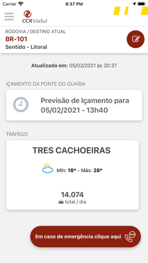 Confira, em tempo real, os dados dos serviços disponíveis no App CCR Rodovias Sul: