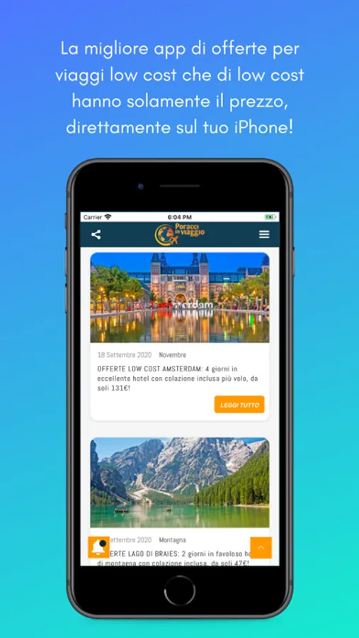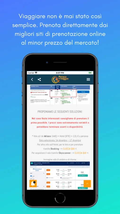Poracci In Viaggio è un' app estremamente semplice da utilizzare ed è ritenuta da molti la miglior piattaforma di offerte di viaggi low cost in circolazione. Non abbiamo creato un caotico motore di ricerca, già ne esistono troppi, ma abbiamo puntato tutto su funzionalità e praticità. Ogni giorno su www.poracciinviaggio.it pubblichiamo offerte per le destinazioni che più ci ispirano, cercando di includere partenze dalla maggior parte degli aeroporti d'Italia (disponibilità permettendo), indicando informazioni pratiche e dettagli ed inserendo i link diretti per prenotare.