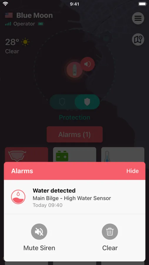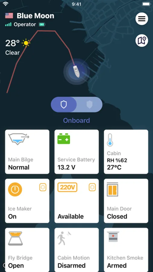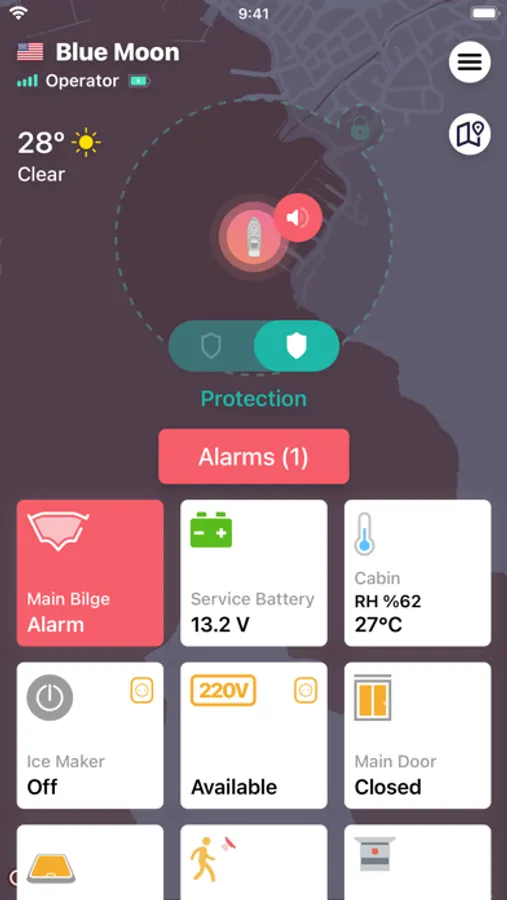 Switch between modes and protect your boat with a single touch. Protection mode automatically creates a geofence around your boat. This mode also arms entry and motion sensors.