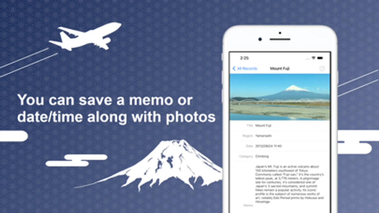 Automatically set the date and location information of the photo in the record! You can also register from the 'Photos' app on iOS.