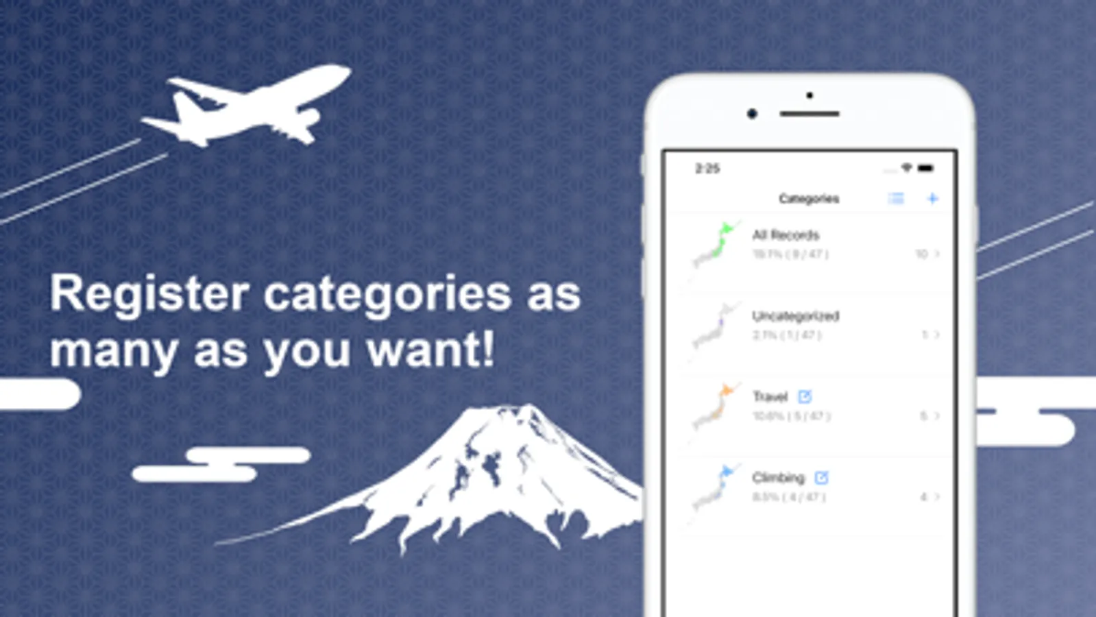 You can keep track of places that you have visited, temples and shrines that you have got 'Gosyuin' from, or prefectures that you have memorized the name of the prefectural capital of.