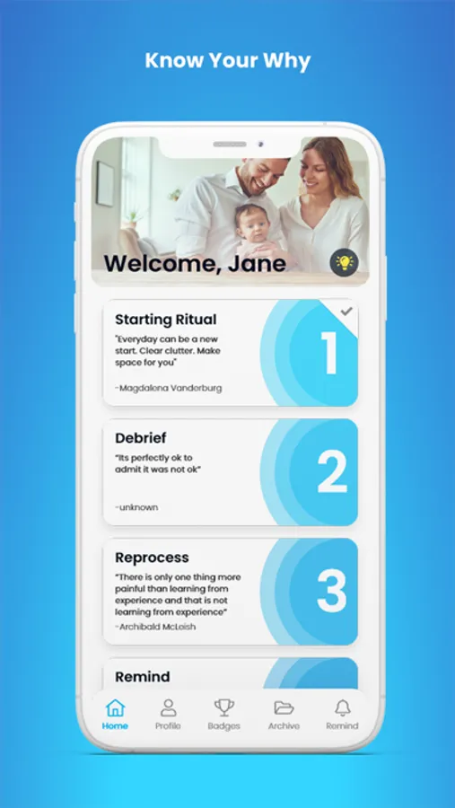 The app comprises built-in strategies that assist employees in improving the management of their stress levels, unhelpful thoughts, awareness raising and enhanced insight into unhelpful pattern of thinking and behaviour. The app is designed to assist with the development of healthy workplace routines through built-in tasks that assist individual employees to commence their working day with a clear mind and orient themselves to their workday. This is achieved through an inbuilt daily starting ritual that comprises a five-minute cognitive stress-management strategy.
