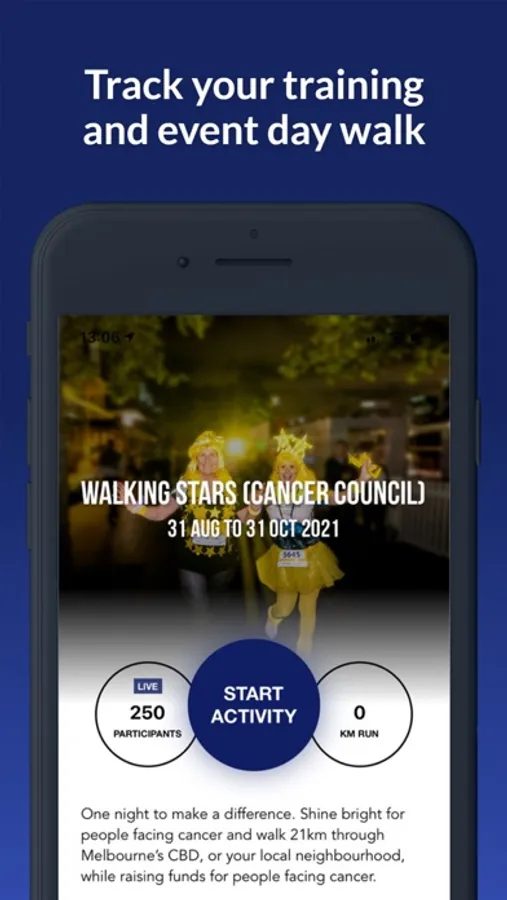 After you register for Walking Stars, you can start training and fundraising straight away. You'll receive a FREE six-week training plan and tips to help you along the way. In the weeks leading up to the 21km challenge, train and fundraise as a team or a solo star to unlock fun features in the app.