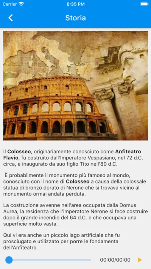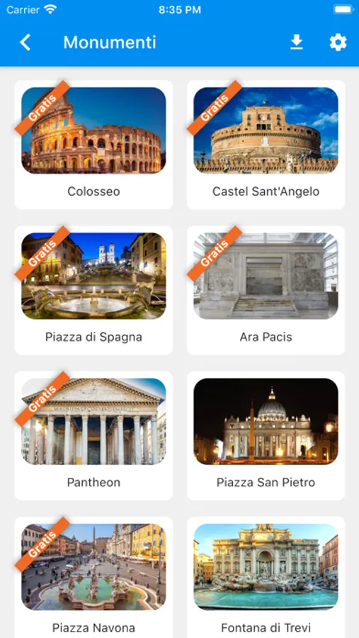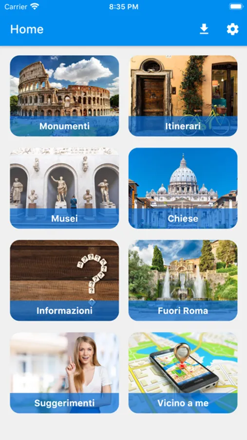 "MyRoma" meets these requirements: it provides in-depth information about attractions in ROME, such as monuments, churches, museums, art galleries, fountains, palaces and other places of interest.