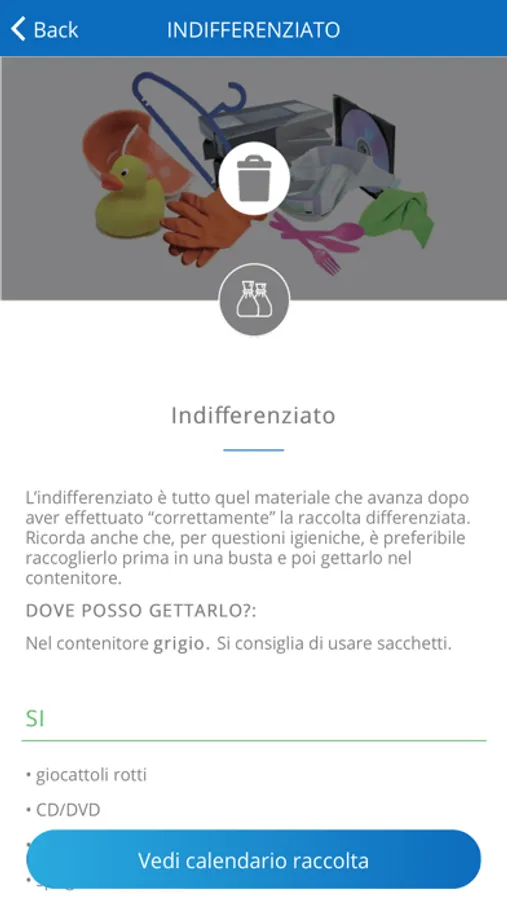 L’app offre all’utente una serie di funzionalità attraverso cui è possibile conoscere ed approfondire le modalità di conferimento dei rifiuti, ma è anche strumento utile per inviare segnalazioni e richieste di ritiro a domicilio, conoscere gli orari e i giorni di apertura del Centro di Raccolta, personalizzare le notifiche e tante altre funzioni.