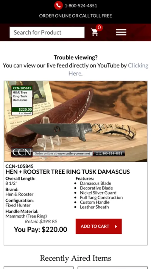 This app provides an easy way to access our entire catalog of pocket knives, kitchen cutlery, hunting knives, swords, and much more! You can also watch our program's livestream 24/7 and shop around the clock.