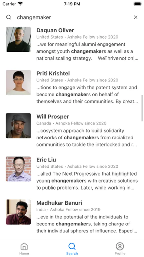 • Search for the list of Fellows whose work match your personal or professional interests and passion