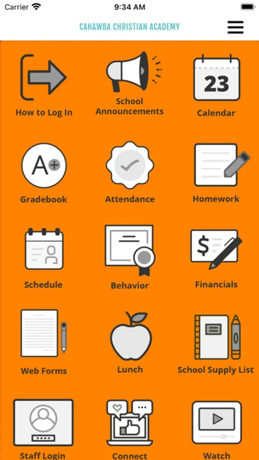 Welcome to the Family App for families of Cahawba Christian Academy in Centreville, AL! This app is a one-stop-shop for our school community, with anytime, anywhere access to all the tools, content, and communications parents need to stay connected and engaged. School information available in one easy to access place includes Announcements, School Calendar, Student Grades and Homework, Family Accounting, Giving Options, and much more!