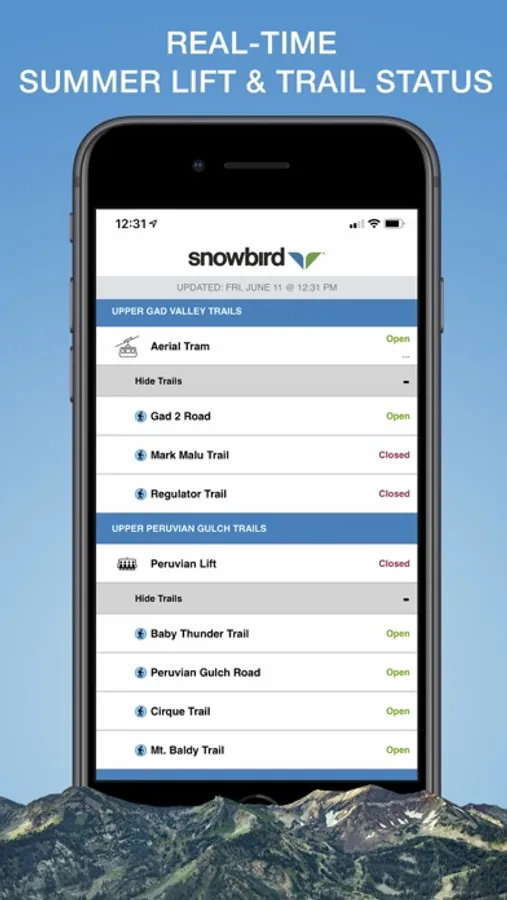 The official app of Snowbird. Hold all the Snowbird summer information at your fingertips. Real-time lift & trail status, weather data, live webcam feeds, summer activity status, summer trailmap and more.