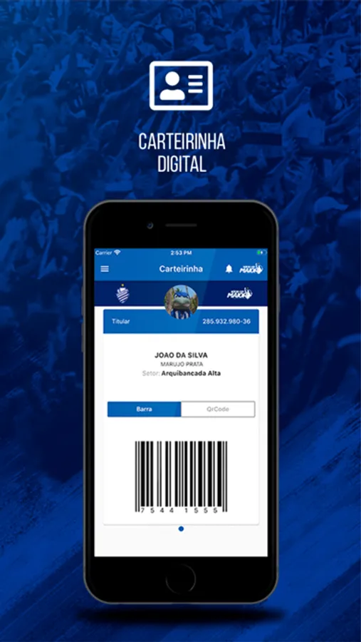 • Carteirinha digital no celular;