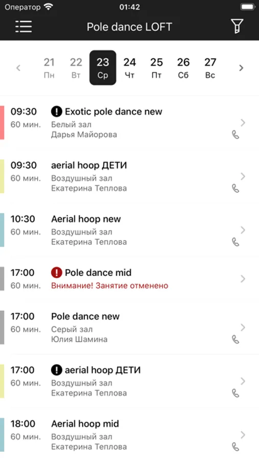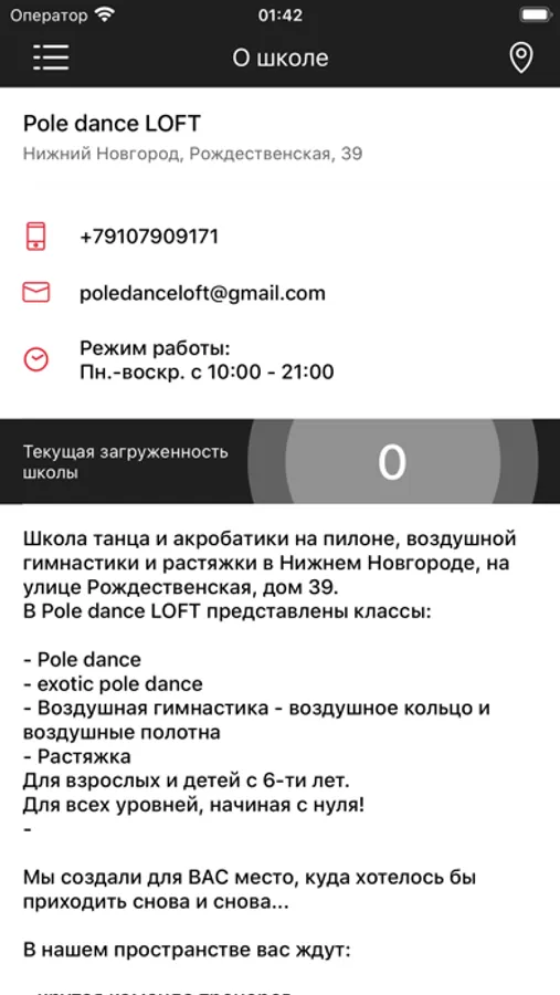 Мобильное приложение для учеников школы Pole dance LOFT в городе Нижнем Новгороде.