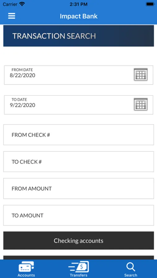 • Check your latest account balance and search recent transactions by date, amount or check number.
