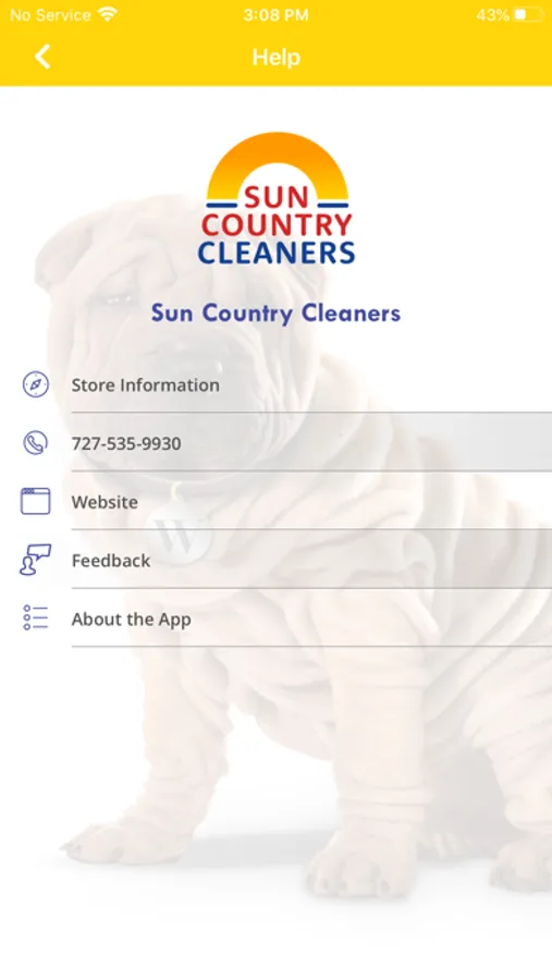 5) Quickly contact Sun Country Cleaners by phone or email and access their website all directly from your device.