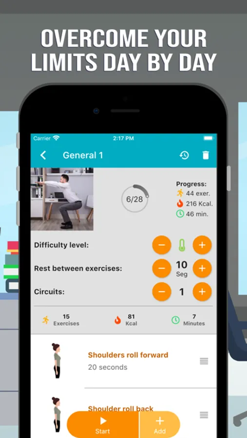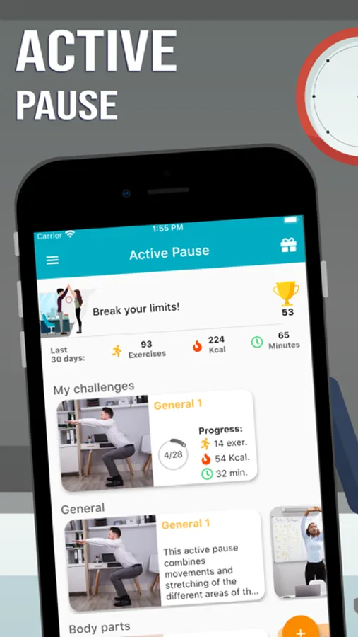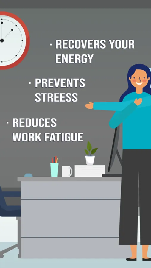 With our app you can prevent health problems due to repetitive work or prolonged static positions in your workplace. You can do exercise anywhere you wish, no equipment needed.