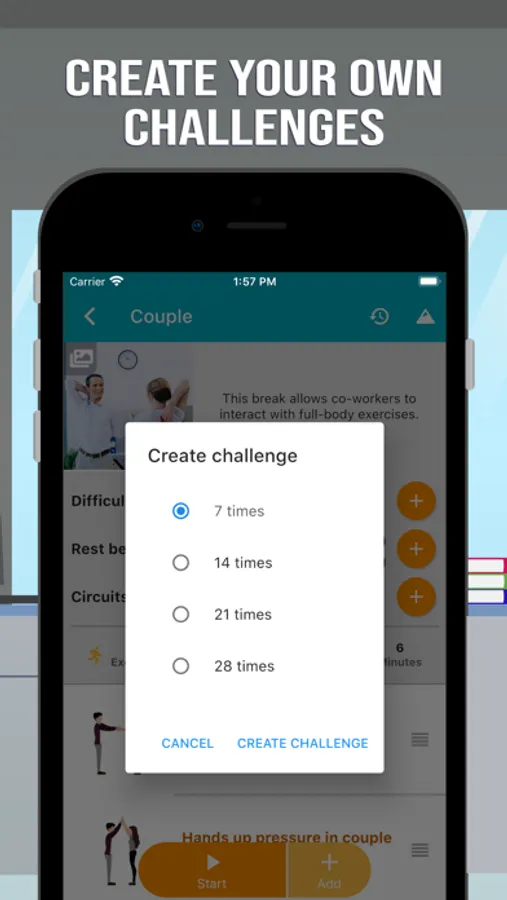 * Challenges: You can challenge yourself with challenges of 7, 14, 21 or 28 days.