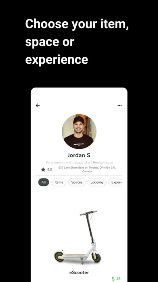 Choose from thousands of local items + spaces to rent - near or far - in communities big or small throughout a 100+ communities. Find everything from a eScooter to a bike or a unique space in the heart of a city. Browse through item + space listings you’d love to rent from dependent on your vibe, want, or just need for a new community experience, and book your rental directly in the app or save it for a future date.