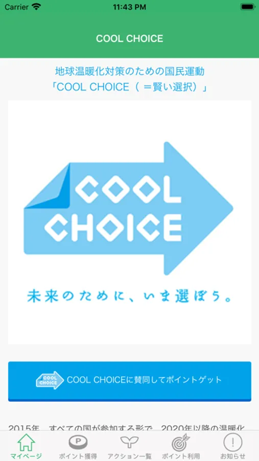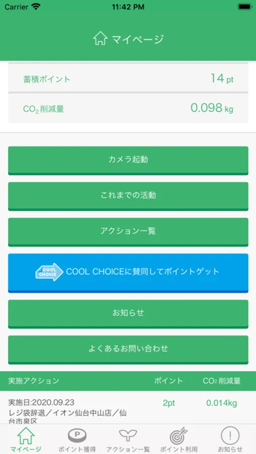 アプリ内ではご自身のエコアクションによって、どのくらいCO2が削減できたのかを確認することができます。