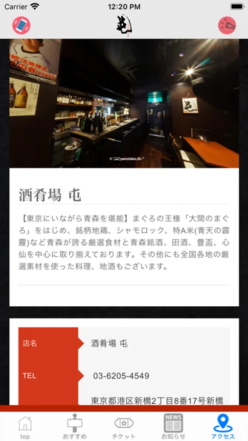 360度パノラマ画像でのお店の内観の閲覧や、お店へのアクセスなどの店舗情報の確認、またお得な情報などの最新のお知らせを確認することができるアプリケーションです。
