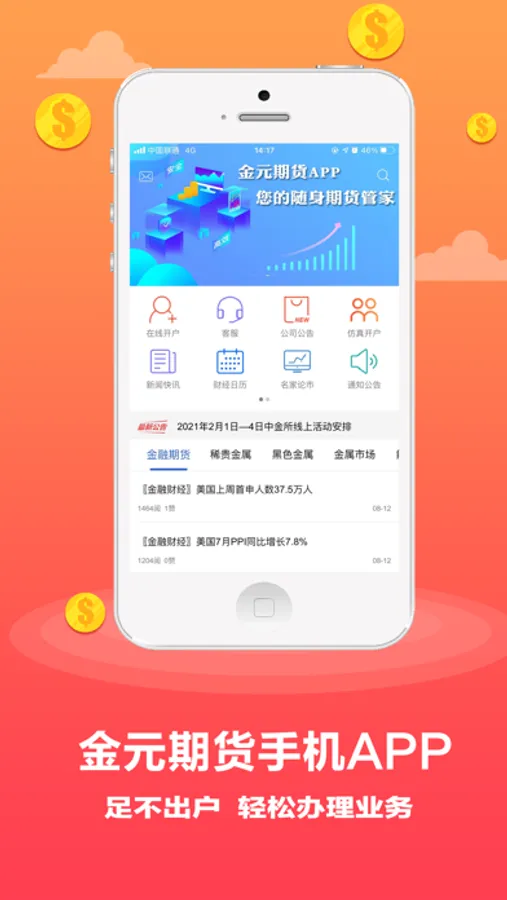 金元期货APP是集开户、交易、行情、资讯、产品及服务于一体的综合金融平台。