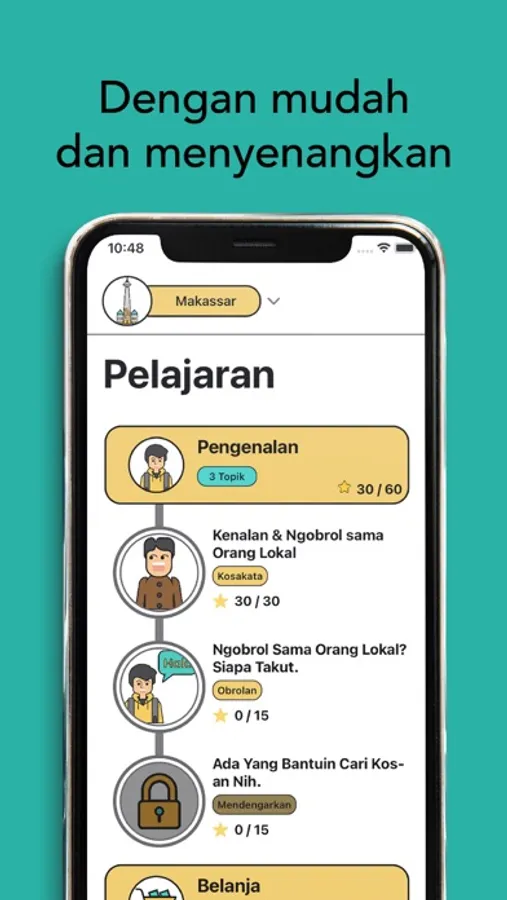 Dialokal adalah game yang akan membantumu untuk memahami bahasa lokal dengan cara yang fun. Kamu bisa belajar tentang kosakata, kalimat yang sering digunakan dan mendengarkan percakapan orang-orang lokal.