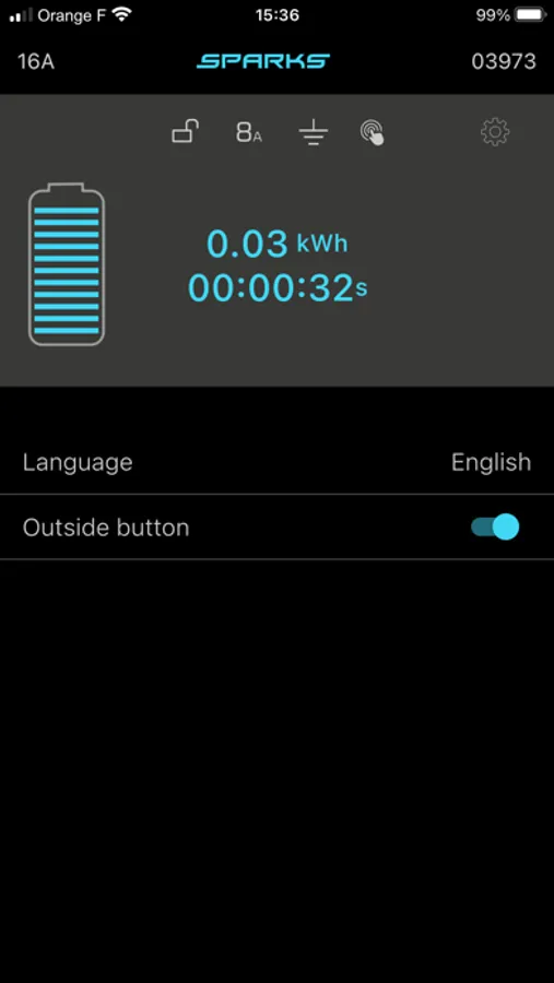 SPARKS CHARGERS have built-in memory. The adjusted settings are saved even if the equipment is disconnected from the power mains. There is a touch button on a body of a charger for manually changing the parameters of the charging session. The app's settings menu allows you to turn off the external touch button if necessary.