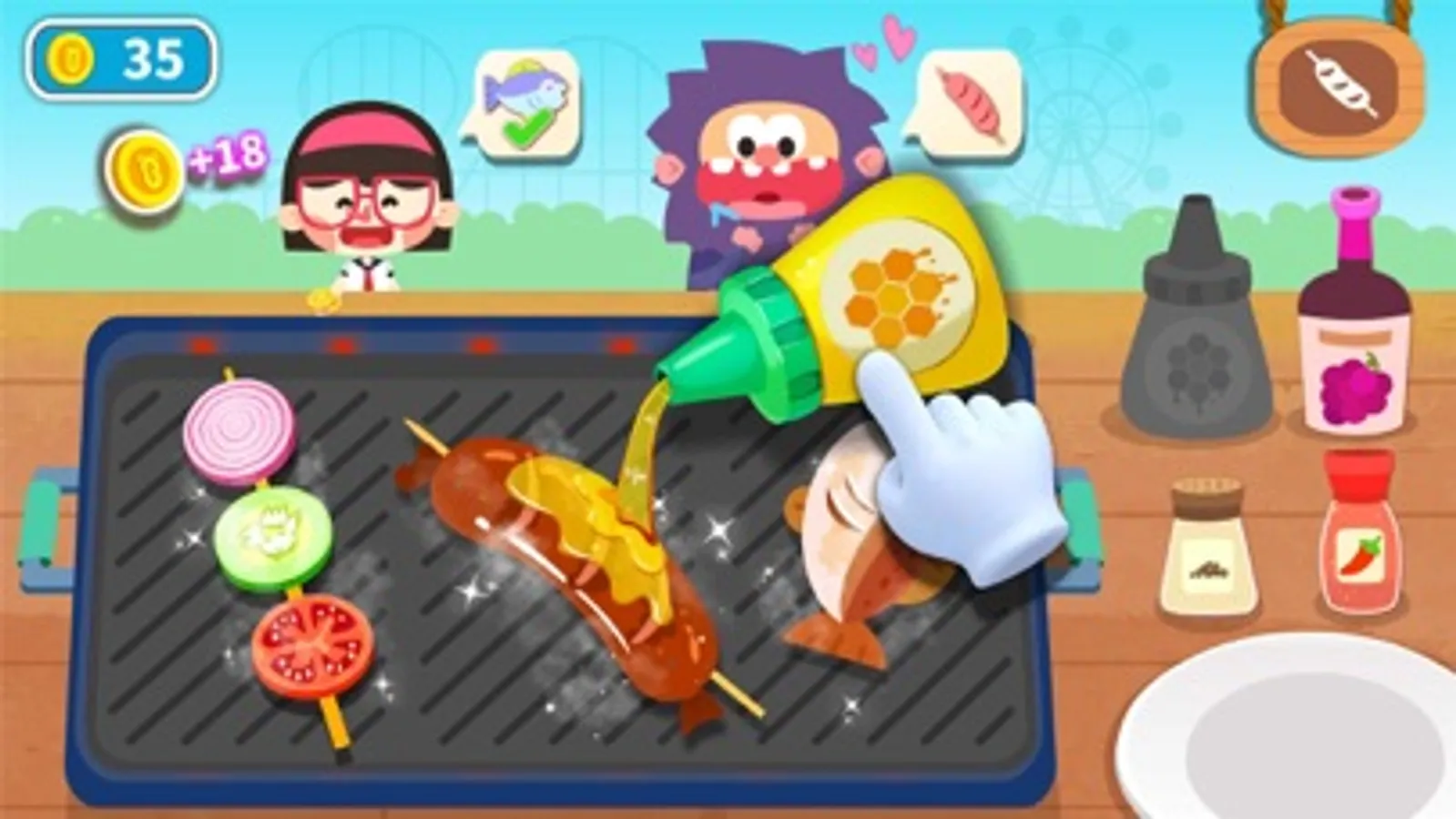 Little Panda's Food City is open! Here you will find a wide variety of delicious food, desserts, barbecues, juices and more. Come and make delicious food for your customers together with Little Panda! Look at the happy faces of your guests. Your food is really yummy!