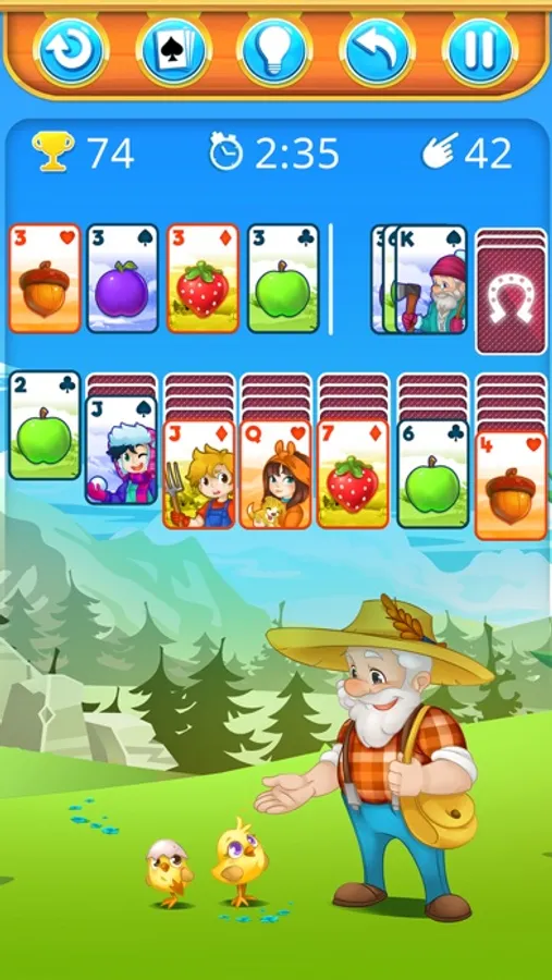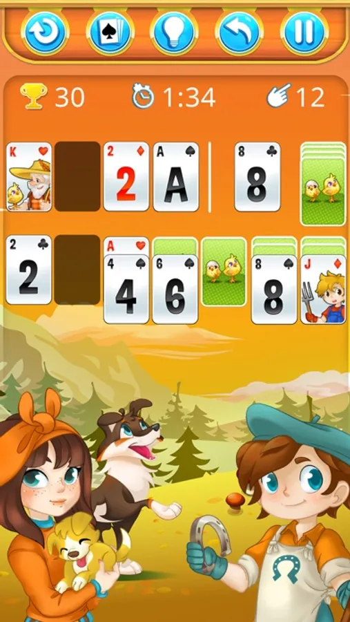 Take a break, relax and play HAPPY FARM SOLITAIRE Happy Farm Solitaire is a wonderful game with very nice graphics and a relaxing ambiance. If you like cards games and solitaire games, you will love HAPPY FARM SOLITAIRE with its beautifull design. HAPPY FARM SOLITAIRE is a very nice classic solitaire, with no complex gaming mechanisms that you can find in new kind of solitaire games nowdays. In HAPPY FARM SOLITAIRE, just relax and enjoy playing a solitaire game with amazing and so cute graphisms. Do you like the countryside, animals, flowers, nature and cards games ? HAPPY FARM SOLITAIRE is for you !!!