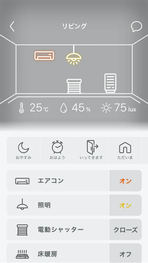アプリから設置したカメラの映像を確認したり、照明、空調、給湯器、カーテン、シャッター、玄関ドアなど、家電、建材、設備(ECHONET Lite機器、家電リモコン機器)の遠隔操作を可能にします。