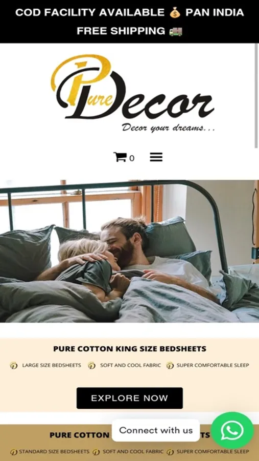 Pure Decor ® is a brand evolved in the year 2019, after doing an intense study about the bedsheet market in India. Pure Decor has its base operations in Mayur Vihar, Delhi, INDIA. We studied the market exclusively for bedsheets and found out a major requirement of the bedsheet’s consumer wanting to choose their products by witnessing the actual product’s photograph. We have always seen the bedsheet packagings to be labeled with fancy photographs which in original is not the product which is being offered to the consumer, hence making it difficult for them to make the right choice.