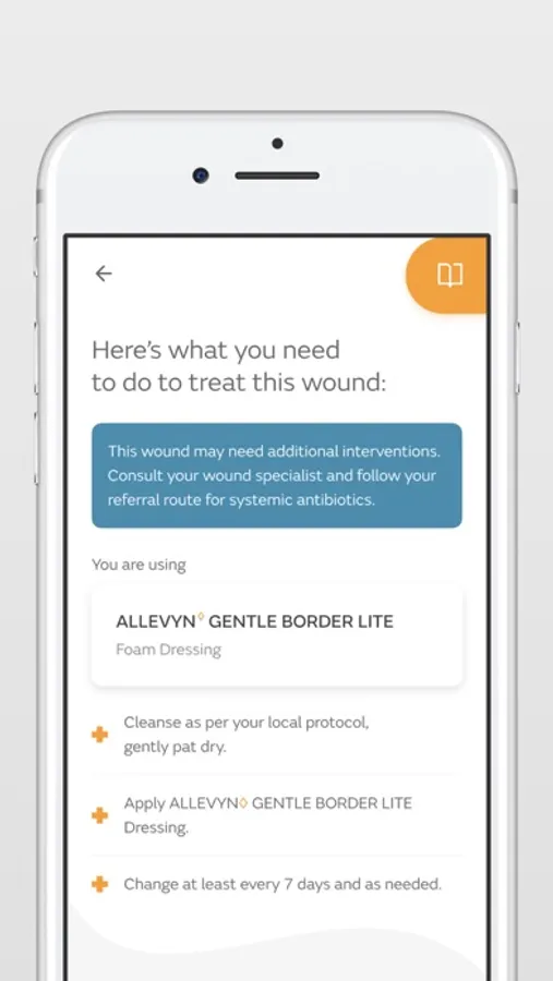 Based on this information, WOUND COMPASS™ CSA provides guidance on treatment, products, and when to consult a specialist. The guidance is accompanied by additional educational resources, images, and diagrams to improve confidence when treating wounds. The app can also be customised to your formulary.