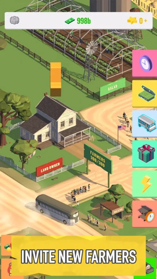 Tired of similar 2d farming games? You should try something new. Idle Farm is a new clicker game with beautiful 3d animations, beautiful low-poly animals, complex farming equipment, buses, planes, and much more.