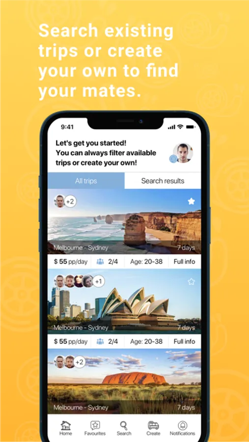 - This easy-to-use application allows you to search existing trips for free. You can request to join someone, or create your own and invite others to join. Choose your travel dates, locations, number of people and age bracket for your group - it’s as simple as that.