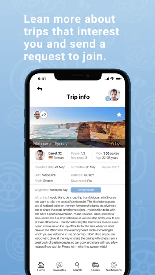 - Can’t drive or too young? No problem, you can create your own trip and select others to drive or join someone else's trip who already have a driver.