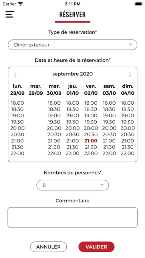 - Réserver une table en terrasse ou en salle.