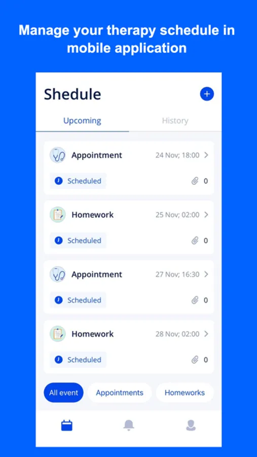 - schedule with homework exercises