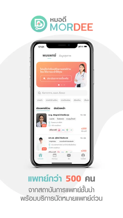 - พบหมอได้ 500+ คน จาก 20+ สาขา พร้อมคลินิกเฉพาะทาง
