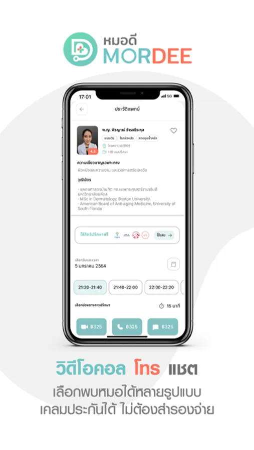 - วิดีโอคอล โทร หรือแชต กับหมอได้ ในวันและเวลาที่สะดวก