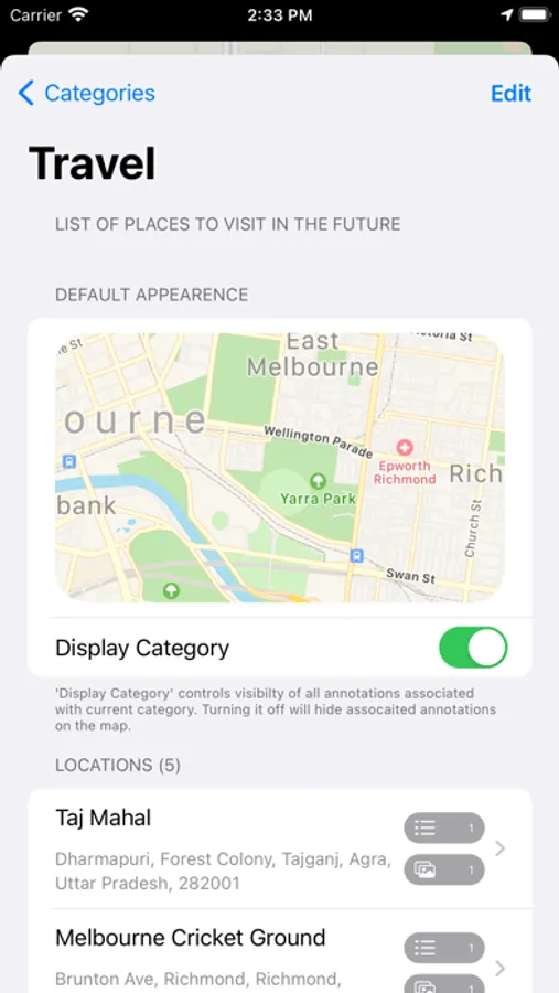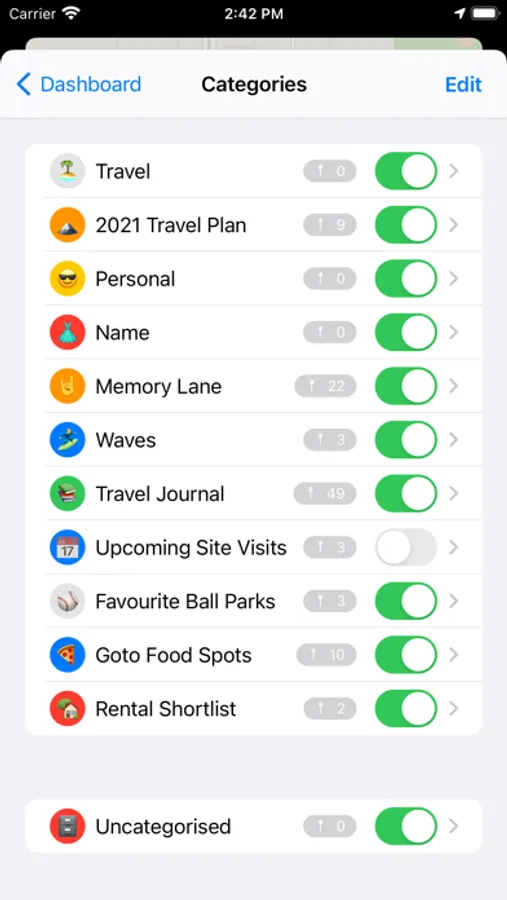 - Create categories to organise locations and customise their visual appearance to give them a unique personality