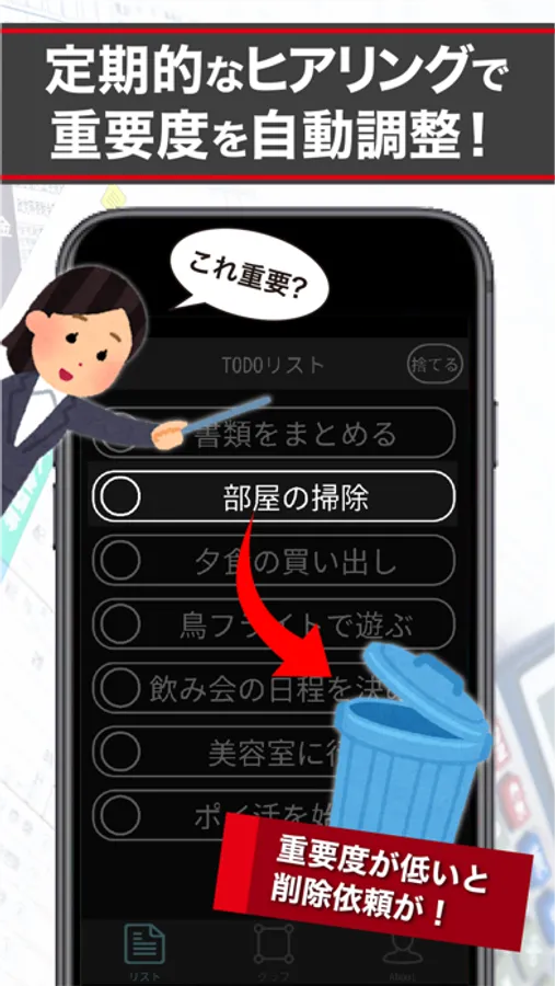 本当に必要なTODOに注力することができるようにするのがアプリの目的です。