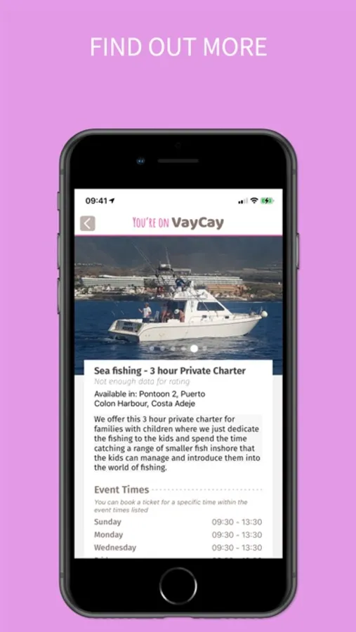 VayCay helps you find fun stuff to do on vacation - all at the best possible prices. VayCay lets you search for things to do in your holiday resort by category, such as on water, in the air, on wheels, etc, or by vibe, such as excitement, relaxation, active, etc.