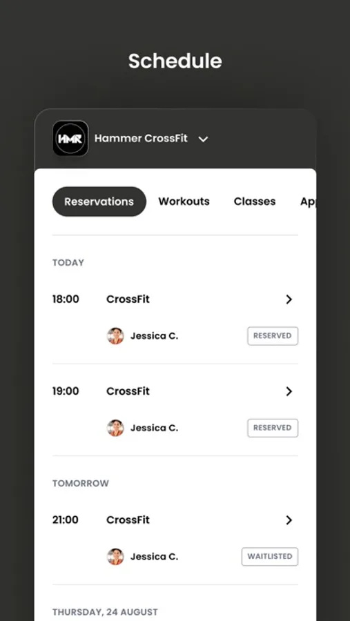 For members of Hammer CrossFit to reserve their place in a class, sign up for gym events, and general account management like updating headshots and credit card on file.