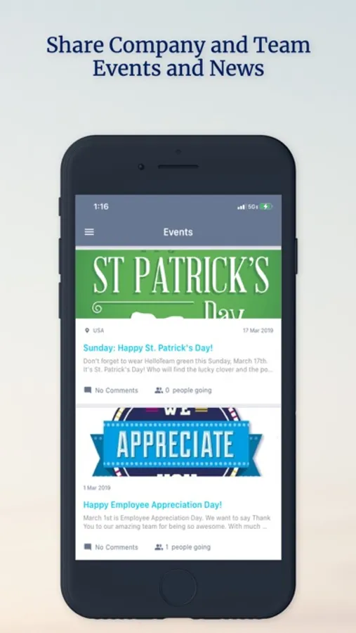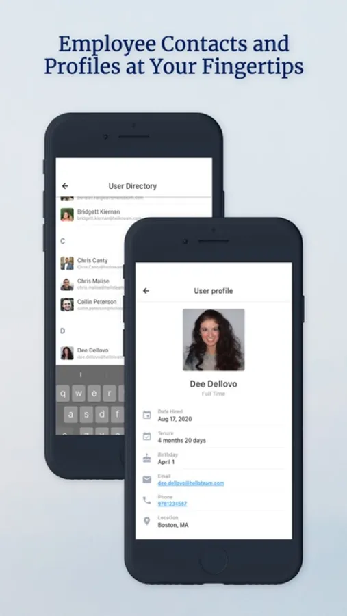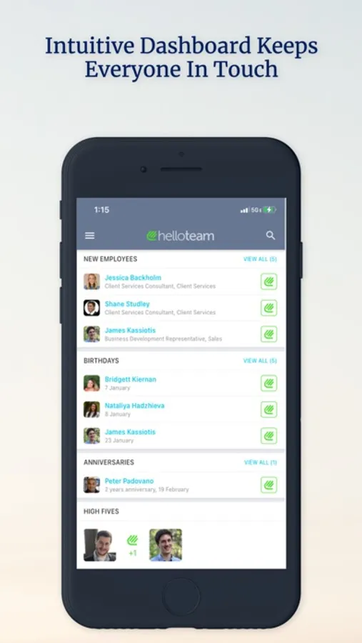 Our iPhone app empowers you to use our Communication and Engagement tools to keep everyone connected on the go. Say Hello to staying up to date on company news and events, new hires, work anniversaries and more. Our Surveys enable you to get feedback from your team on culture and engagement. You can even utilize surveys to conduct Health checks and Return to Work Questionnaires. Stay in touch with your team through an easily-accessible Employee Directory.