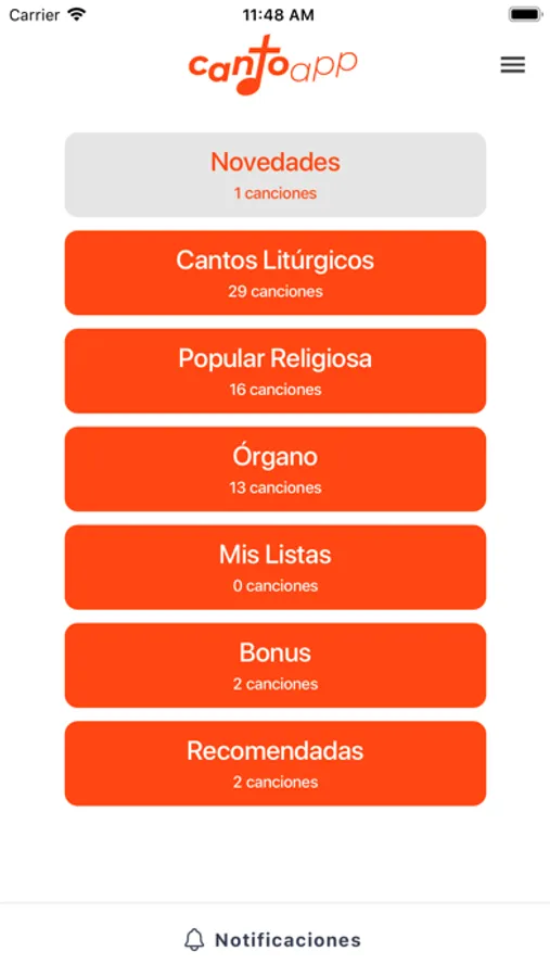 CantoApp está en proceso de desarrollo, no está todavía finalizada.