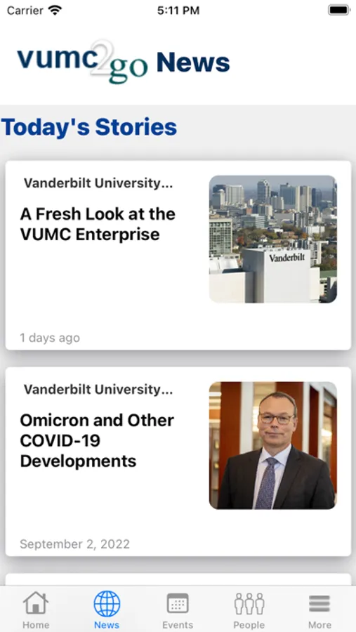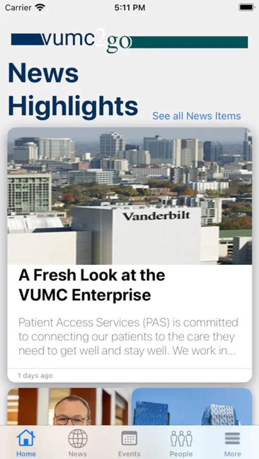 -The vumc2go app will provide access to news and information, including articles and stories related to employee life, wellness, VUMC news, etc.