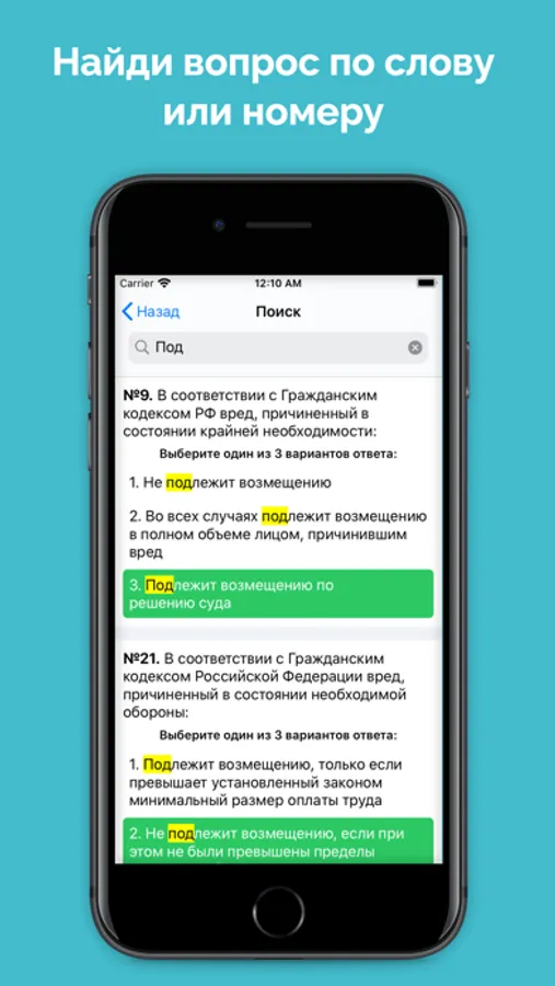 Все вопросы разделены на небольшие списки. Изучай вопросы и тренируйся. Сдавай экзамен на 10 вопросов. Легко находи нужные вопросы через поиск. Добавляй сложные вопросы в избранное. Отслеживай свой прогресс обучения.