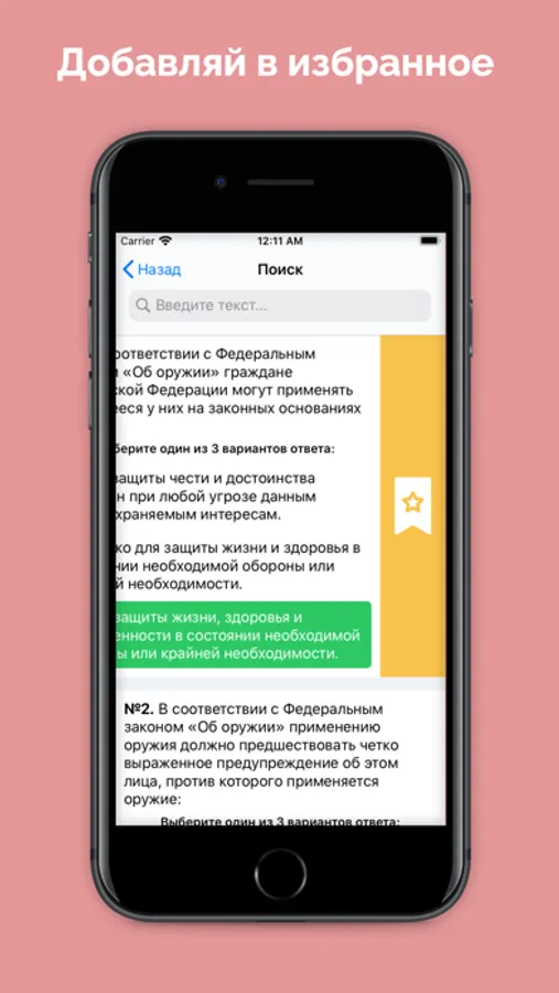 Избранное - добавляй вопросы в список, чтобы не забыть повторить.
