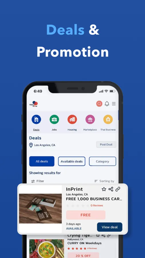 Hot Deals to support Thai business where a user can get special discount and promotion which also bring the customers to business.