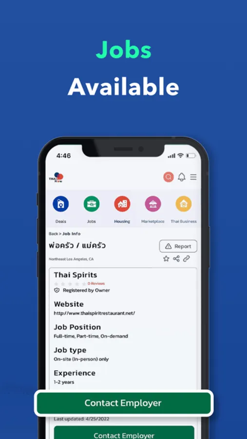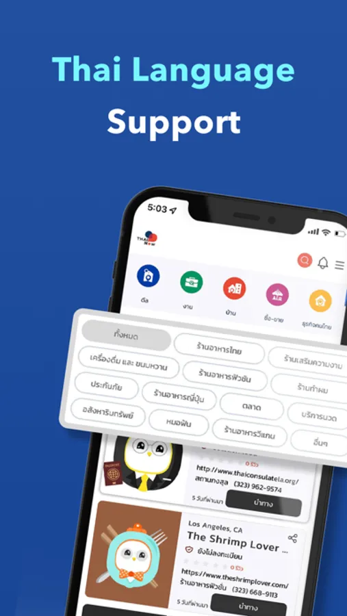 ThaiNow application aims to support and promote Thai community, Thai business, and togetherness as Thais in the United States. The application initially provides the following services: